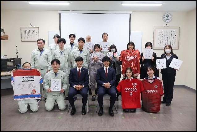 ロアッソ熊本のパートナー企業訪問で、塩浜 遼(しおはま りょう)選手と渡邉 怜歩(わたなべ れある)選手がご来社されました。